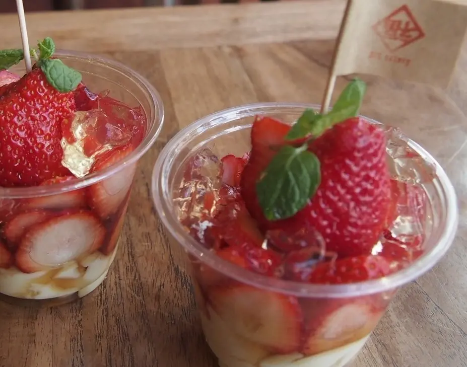 ベースには、台湾の伝統スイーツである豆花(トウファ)を使用。なめらかな口あたりとやさしい甘みが、いちごの華やかな味わいを引き立てます。